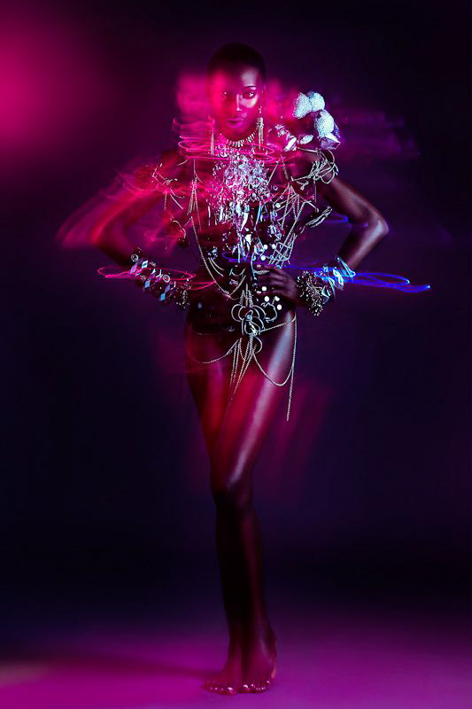 3rd look- Shiney- Fashion forward looks with lots of shine or sparkle when lit. Look can be sequins or other shiney material. Looks can be party dress, pants, long dress etc.